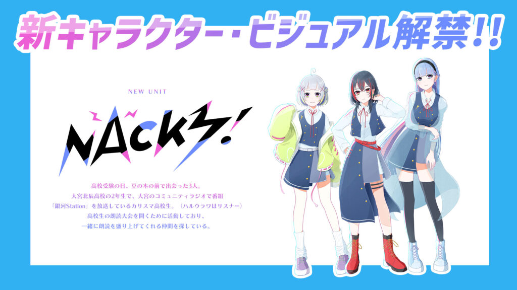 新感覚メディアミックスプロジェクト「 ボイスト Voice & Stories 」から派生したVTuber声優による新シリーズ「ボイスト・ハピラキ!」の新ユニット「NACK3!」のキャラクター詳細を2025年9月26日より公開しました。