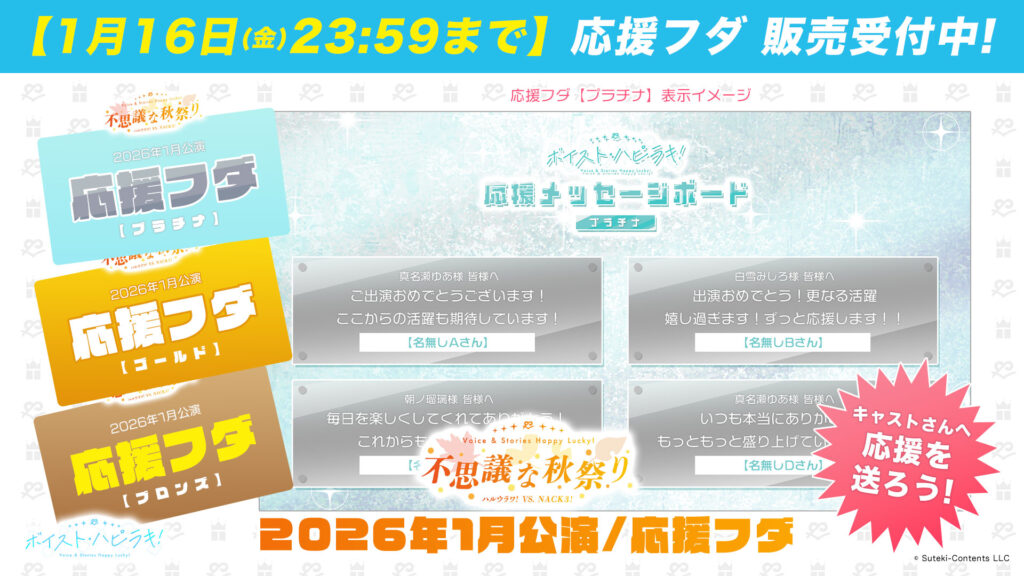 【2026年1月公演】ボイスト・ハピラキ!「応援フダ」受付期間延長!キャストへエールを届けよう!