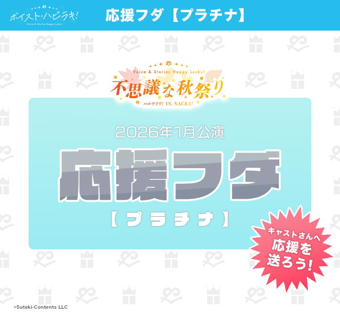 応援しているキャストさんへギフトにのせて応援をお届けするプロジェクトです。当日視聴が難しいお客様も、もちろん、当日ご視聴いただけるお客様も、『応援フダ』を通して応援の気持ちを形にしていただく事が出来ます。